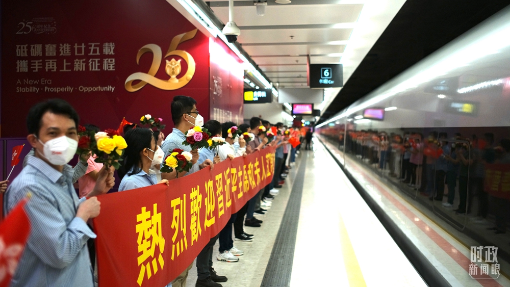 在香港西九龍站舉行的歡迎儀式上,習(xí)近平主席發(fā)表了此次香港之行的首次講話,通過電視直播傳遞到了千家萬戶。