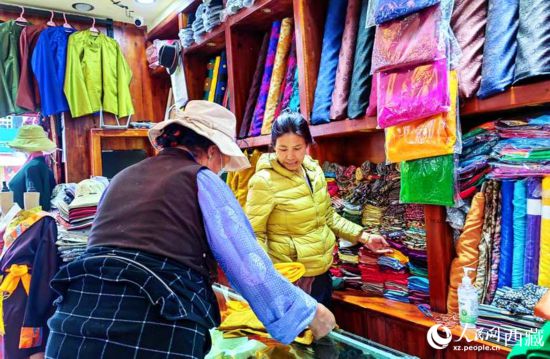 進(jìn)入旅游旺季后,來自天南地北的游客到拉薩八廓古城賞民俗品文化,位于八廓街上的朵究倉藏裝店也因此成了必備網(wǎng)紅打卡店。“我在新聞里看到總書記來過你們店,所以專門過來的,想買一身藏裝作紀(jì)念,老板你幫我看看哪件合適?”來自東北的吳女士邊挑選衣服邊說。