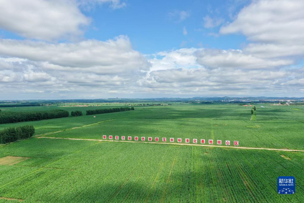 這是吉林省梨樹縣國家百萬畝綠色食品原料(玉米)標準化生產(chǎn)基地核心示范區(qū)(無人機照片,2022年7月7日攝)。新華社記者 張楠 攝