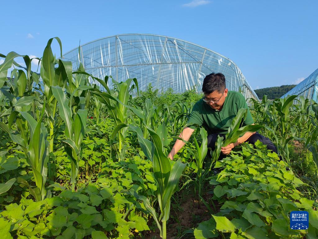 在吉林省梨樹縣泉眼溝村,宏旺農機農民專業(yè)合作社理事長張文鏑在田里查看不同種植方式的作物長勢(2022年7月5日攝)。新華社記者 薛欽峰 攝
