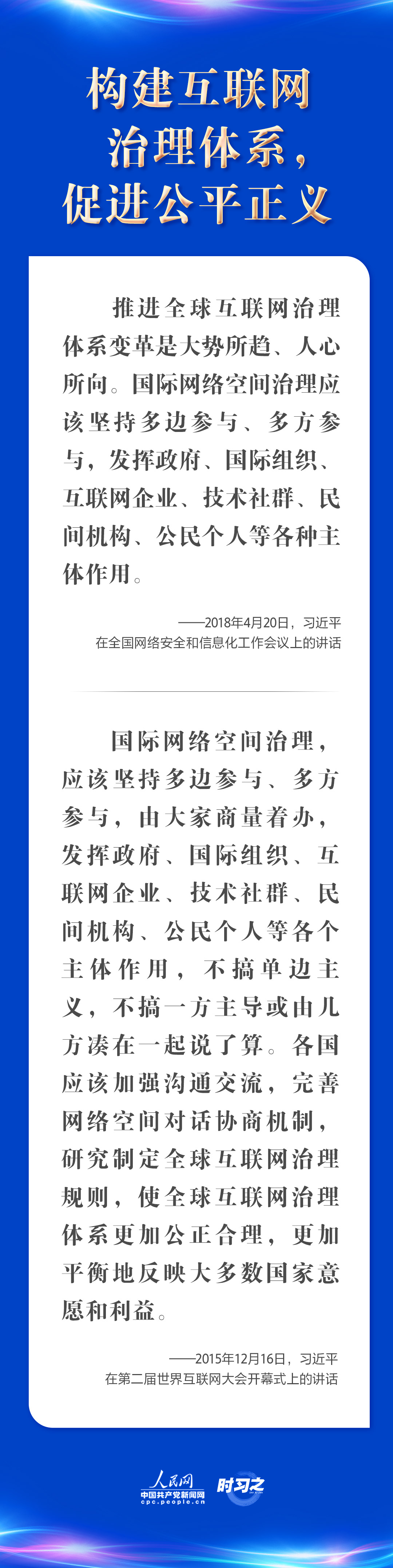 網(wǎng)絡(luò)空間是人類共同的活動(dòng)空間。中共中央總書記、國家主席、中央軍委主席習(xí)近平一直心系網(wǎng)絡(luò)空間治理,創(chuàng)造性提出了“構(gòu)建網(wǎng)絡(luò)空間命運(yùn)共同體”的重要理念和“加快全球網(wǎng)絡(luò)基礎(chǔ)設(shè)施建設(shè),促進(jìn)互聯(lián)互通;打造網(wǎng)上文化交流共享平臺(tái),促進(jìn)交流互鑒;推動(dòng)網(wǎng)絡(luò)經(jīng)濟(jì)創(chuàng)新發(fā)展,促進(jìn)共同繁榮;保障網(wǎng)絡(luò)安全,促進(jìn)有序發(fā)展;構(gòu)建互聯(lián)網(wǎng)治理體系,促進(jìn)公平正義”這“五點(diǎn)主張”,為構(gòu)建網(wǎng)絡(luò)空間命運(yùn)共同體凝聚廣泛共識(shí)。