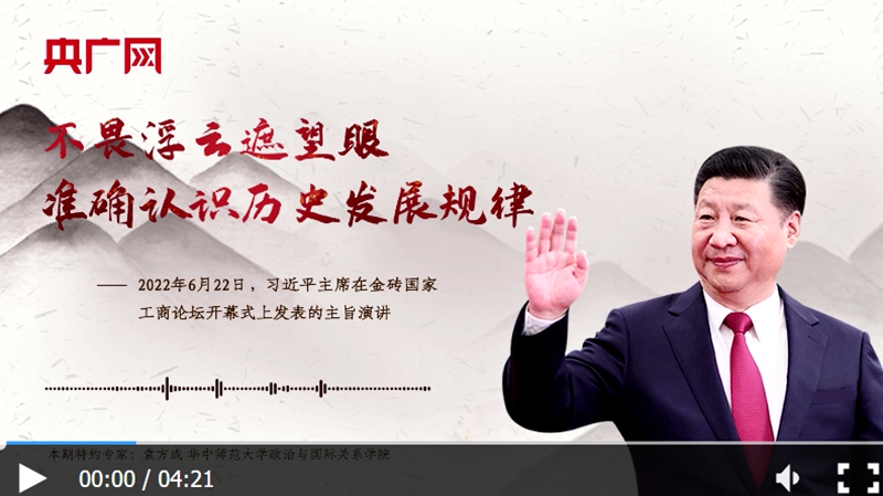 這段話出自2022年6月22日習(xí)近平主席在金磚國家工商論壇開幕式上發(fā)表的主旨演講。