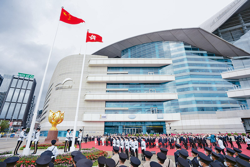 2022年7月1日,香港特別行政區(qū)政府在金紫荊廣場(chǎng)舉行升旗儀式,慶祝香港回歸祖國(guó)25周年!⌒氯A社發(fā)