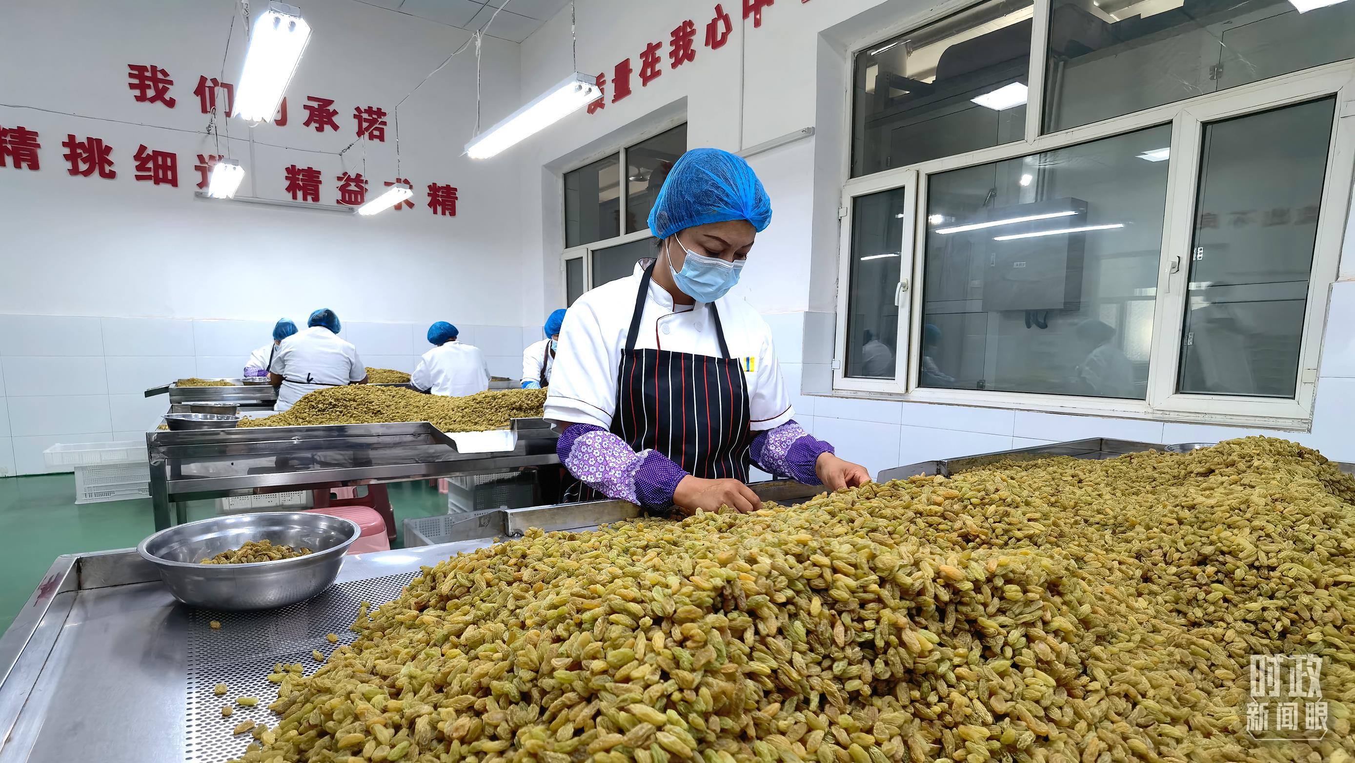 △葡萄干的分揀作業(yè)環(huán)節(jié)。(總臺(tái)央視記者馬亞陽(yáng)拍攝)