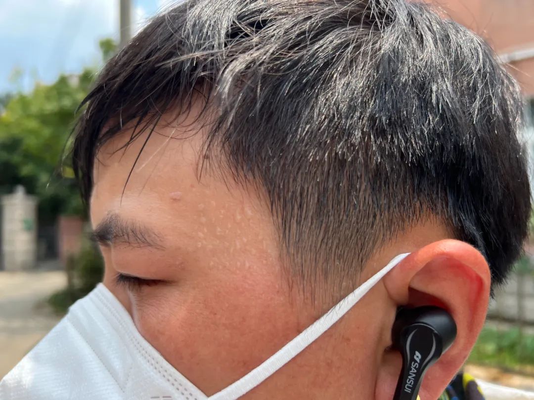 臨近中午,氣溫逼近40℃。穿戴著防曬衣、圍脖、頭盔、N95口罩的小姜大口喘著氣,汗水浸濕了衣服,臉頰露出的部分被曬得發(fā)黑發(fā)紅,全是汗水!胺罆袼獩]什么用,穿得多不是怕曬黑,是之前被曬傷脫了好幾層皮。”小姜說。
