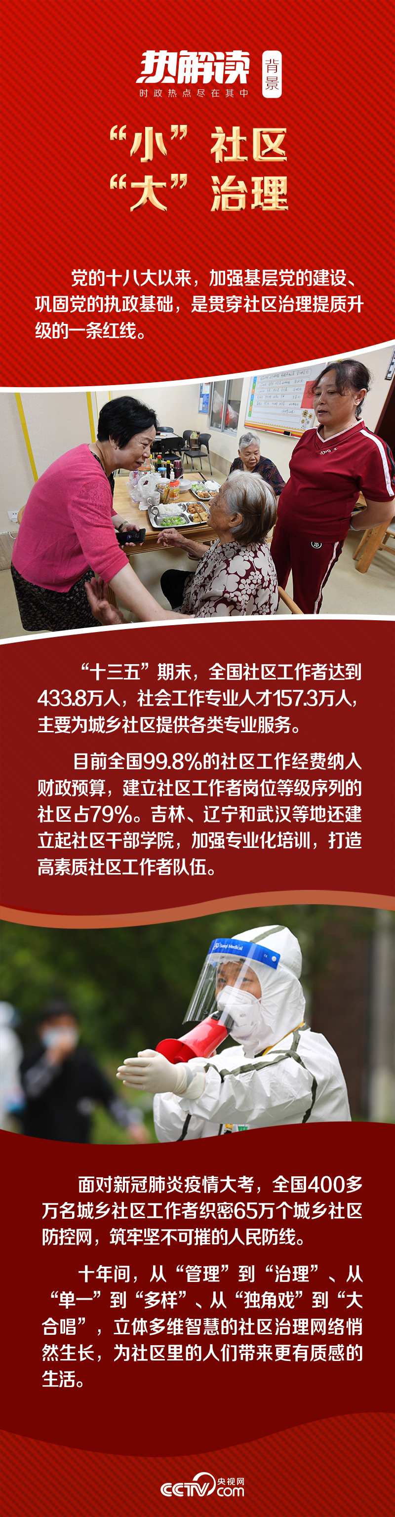 回應居民需求的治理方式、織密筑牢抗疫防線……欣欣向榮的社區(qū)面貌,見證著社會治理重心向基層下移,社區(qū)治理體系建設不斷加強,也彰顯了基層黨組織的戰(zhàn)斗力量。