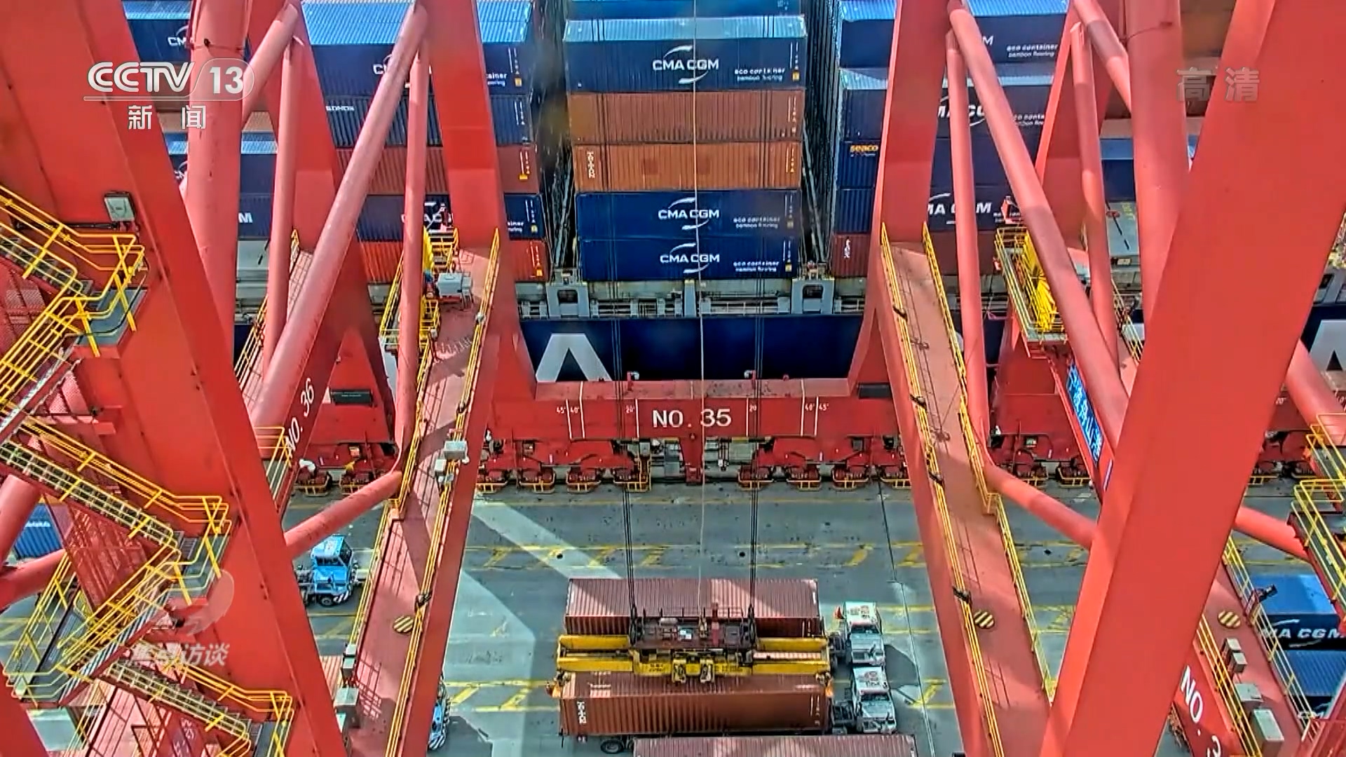 寧波舟山港梅山港區(qū)集裝箱碼頭橋吊司機(jī)錢斌說:“橋吊上布置了19個(gè)攝像頭,可以360度無死角觀察作業(yè)的現(xiàn)場(chǎng)狀態(tài),穩(wěn)定的5G網(wǎng)絡(luò)讓所有攝像頭的畫面實(shí)時(shí)從遠(yuǎn)方傳到我們這邊,讓我們觀察!