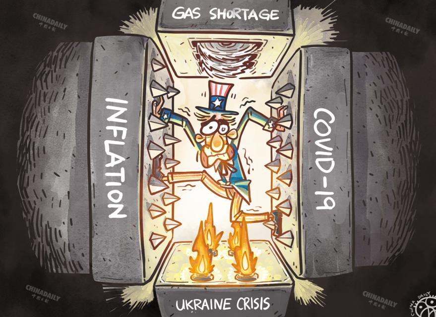 美國(guó)正面臨疫情、通脹、烏克蘭問(wèn)題和油氣短缺四重巨壓。(來(lái)源:中國(guó)日?qǐng)?bào) 蔡朦 英文《中國(guó)日?qǐng)?bào)》2022年7月20日8版) (版權(quán)所有 未經(jīng)授權(quán)不得轉(zhuǎn)載)