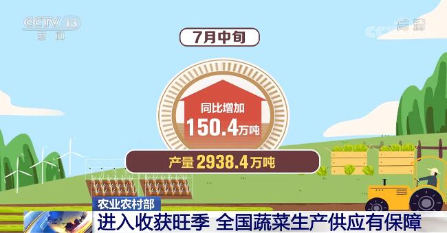 農業(yè)農村部最新發(fā)布的數(shù)據(jù)顯示,當前全國蔬菜在田面積10572.1萬畝,同比增加399.6萬畝;7月中旬產量2938.4萬噸,同比增加150.4萬噸?傮w看,當前蔬菜面積基數(shù)大,特別是黃土高原、東北、西北等夏秋蔬菜優(yōu)勢區(qū)在田蔬菜進入收獲旺季,上市量增加較多,全國蔬菜生產供應是有保障的。