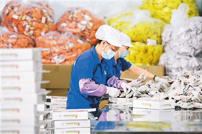 福建省寧德市古田縣積極落實(shí)階段性緩繳社保工作,并出臺(tái)減稅降費(fèi)、金融扶持等各項(xiàng)紓困政策,幫助當(dāng)?shù)仄髽I(yè)渡過難關(guān),實(shí)現(xiàn)健康發(fā)展。圖為7月23日,工人在古田縣晟農(nóng)無公害銀耳基地打包銀耳產(chǎn)品。