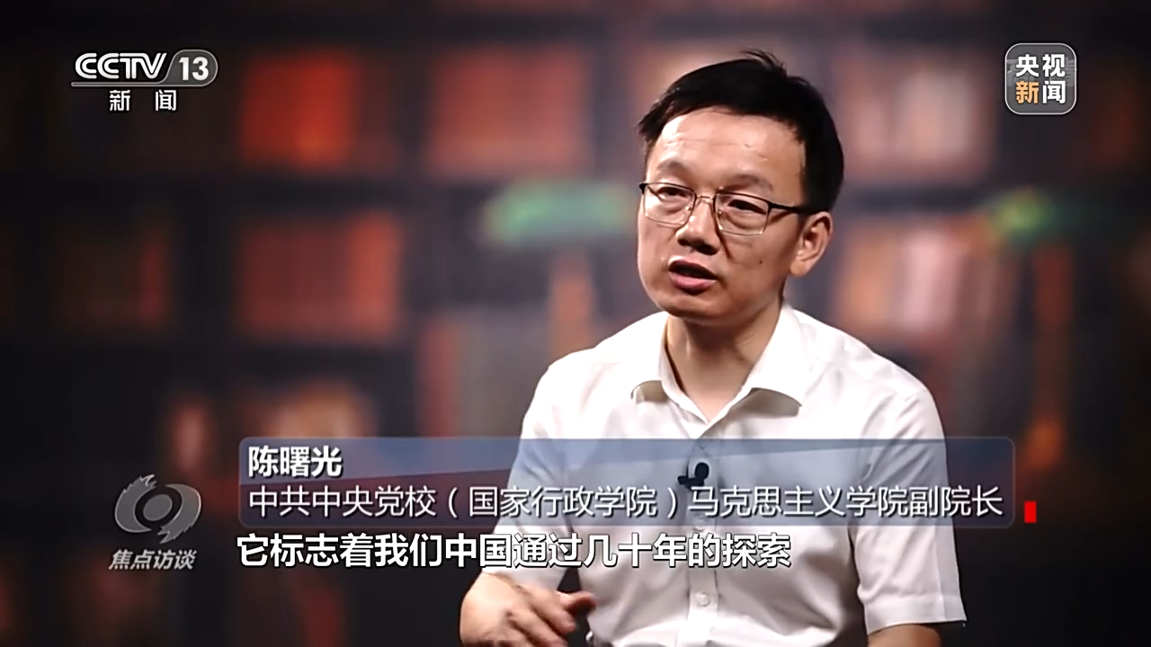 中共中央黨校(國家行政學(xué)院)馬克思主義學(xué)院副院長 陳曙光:它標(biāo)志著中國通過幾十年的探索,找到了一條符合中國國情的,實(shí)現(xiàn)中華民族偉大復(fù)興的正確道路;同時(shí)它也標(biāo)志著我們拓展了發(fā)展中國家走向現(xiàn)代化的途徑,為廣大的發(fā)展中國家實(shí)現(xiàn)現(xiàn)代化,開辟了一條不同于西方現(xiàn)代化道路的新的模式;第三標(biāo)志著我們?yōu)槿祟愇拿鬟M(jìn)步作出了中國的貢獻(xiàn)。