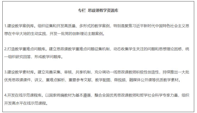 11.建設全國高校思政課教研系統(tǒng)。教育部建設“全國高校思政課教師網絡集體備課平臺”網絡支持系統(tǒng)、“青梨派”大學生自主學習系統(tǒng)、高校思政課教學創(chuàng)新中心資源開發(fā)系統(tǒng)、高校思政課教學指導委員會指導審核評估系統(tǒng)、高校思政課教師基礎數據系統(tǒng)、高校思政課教師研修培訓系統(tǒng)等為一體,共建共享、系統(tǒng)集成、全面覆蓋的全國高校思政課教研系統(tǒng)。