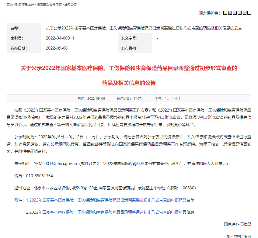 根據(jù)2022年國家基本醫(yī)療保險、工傷保險和生育保險藥品目錄(以下簡稱國家醫(yī)保藥品目錄)調(diào)整工作安排,國家醫(yī)保局近期對申報藥品進行了初步形式審查,并對通過審查的藥品和信息進行了公示。現(xiàn)就有關(guān)工作情況解讀如下。