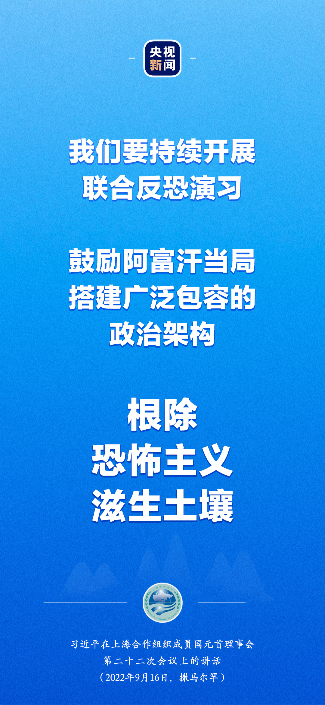 國家主席習(xí)近平16日在撒馬爾罕出席上海合作組織成員國元首理事會第二十二次會議并發(fā)表重要講話,強(qiáng)調(diào)秉持“上海精神”,加強(qiáng)團(tuán)結(jié)合作,推動構(gòu)建更加緊密的上海合作組織命運(yùn)共同體。
