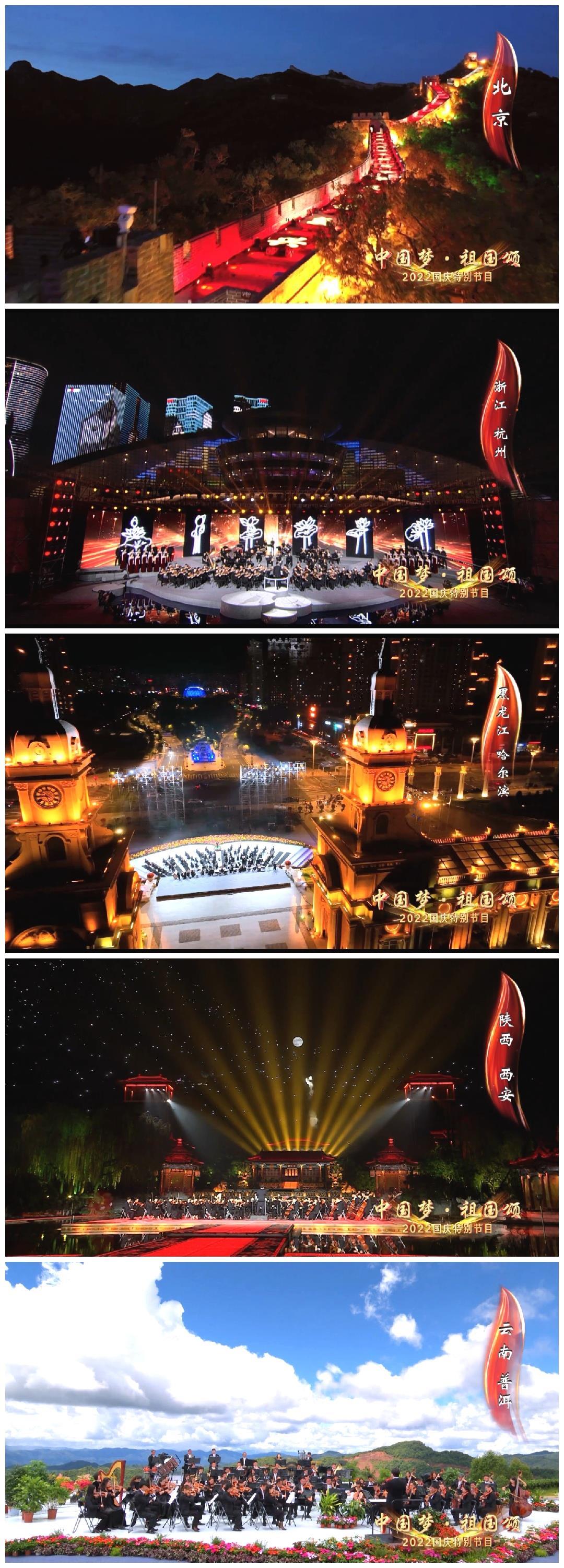 在《中國夢·祖國頌——2022國慶特別節(jié)目》中,五大交響樂團在北京、西安、杭州、哈爾濱、普洱五個城市實現(xiàn)多地聯(lián)動,共同奏響《紅旗頌》,描繪出一幅“江山如畫”的壯美景象,引發(fā)觀眾的共情共鳴。網(wǎng)友稱贊:“壯觀!天南海北,普天同慶!”