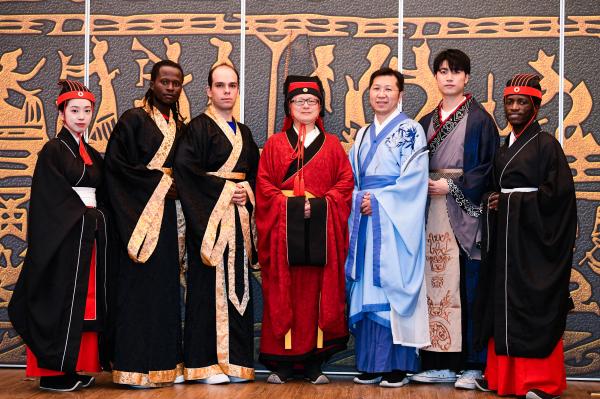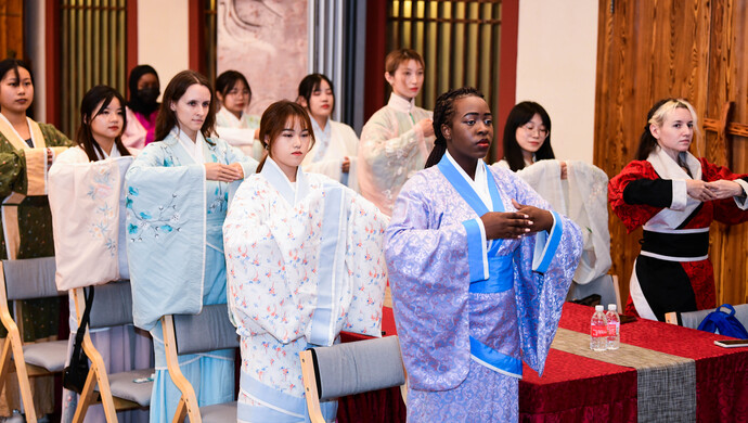 “美美與共,問禮中華”,來自俄羅斯、韓國、老撾、坦桑尼亞等14個(gè)國家的國際學(xué)生,與漢語國際教育碩士專業(yè)的中國學(xué)生一道,祭拜至圣先師孔子,穿戴傳統(tǒng)衣冠,行儒家入學(xué)之禮,沉浸式體驗(yàn)中國傳統(tǒng)文化。