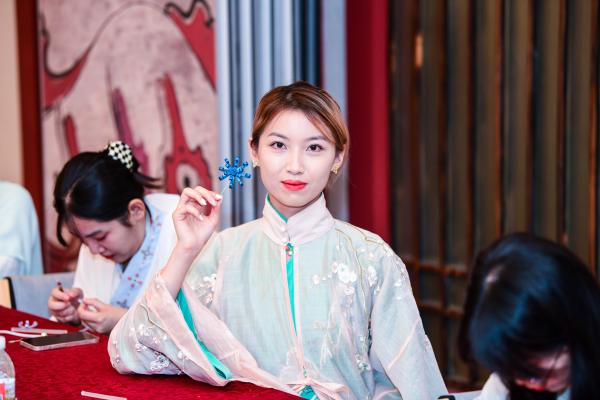 為迎重陽,中外同學(xué)還身著漢服,手持各色衍紙和工具,聽老師講重陽節(jié)日風(fēng)俗與傳統(tǒng),互幫互助,氣氛融洽,學(xué)習(xí)制作了很多漂亮精致的菊扣胸針。同學(xué)們手拿菊扣胸針,身著各色漢服,在未央學(xué)宮內(nèi)紛紛拍照留念。