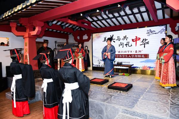 “十一”遇到“九九”,國慶碰上重陽。佳節(jié)成雙之際明禮立志,上海大學(xué)國際教育學(xué)院在嘉定區(qū)未央學(xué)宮行中外學(xué)生入學(xué)拜師之禮。