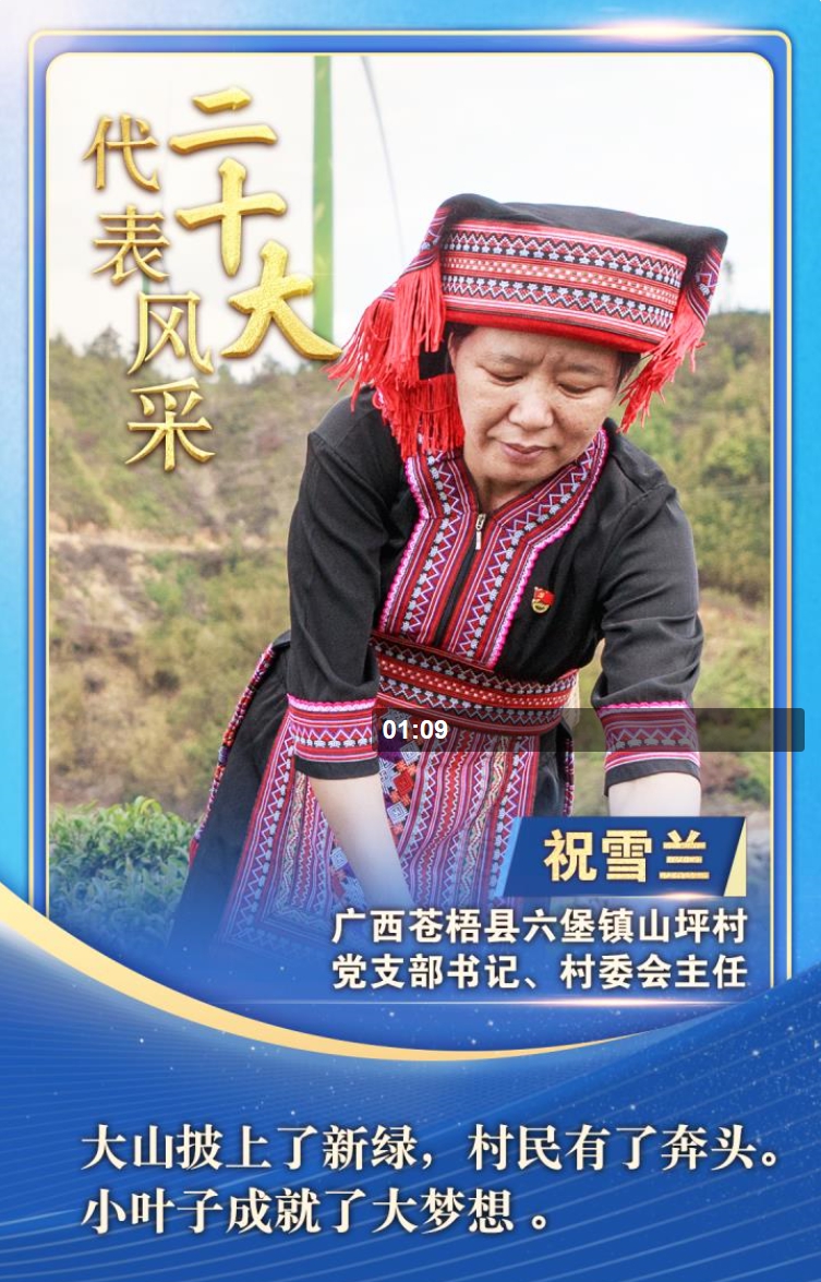 “二十大代表風(fēng)采”一起來認(rèn)識廣西蒼梧縣山坪村黨支部書記、村委會主任祝雪蘭。
