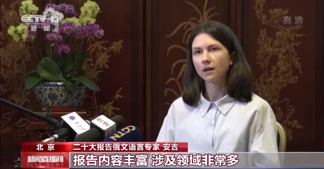 在參與二十大報(bào)告外文版翻譯潤(rùn)色工作的外籍語言專家中,今年27歲的俄文語言專家安吉是最年輕的一位。對(duì)于報(bào)告內(nèi)容,她有怎樣的理解?