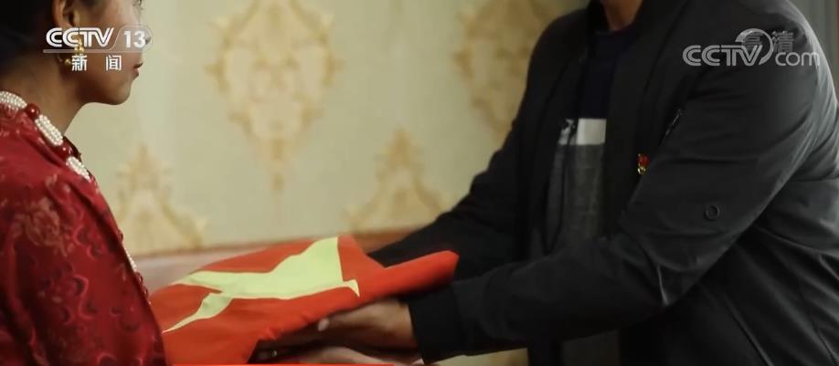 來自西藏日喀則的代表尼瑪拉宗也即將返回家鄉(xiāng)。走進尼瑪拉宗代表的房間,她正在小心翼翼地整理著一面特殊的國旗。尼瑪拉宗來自西藏日喀則市聶拉木縣樟木鎮(zhèn),當(dāng)?shù)卮迕翊稳是?近50年堅持每天在自家升掛國旗。尼瑪拉宗這次帶來的,正是這位“國旗老阿媽”生前升過的國旗,講述著雪域高原兒女動人的愛國故事。
