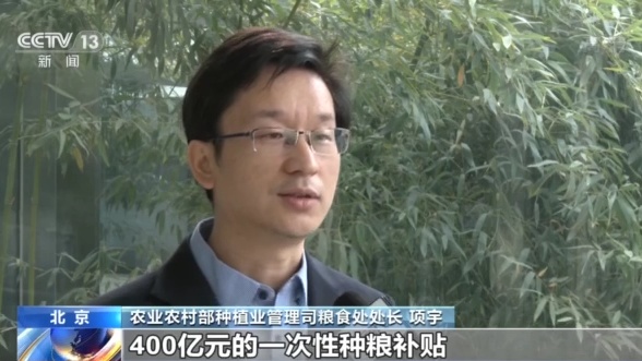農(nóng)業(yè)農(nóng)村部種植業(yè)管理司糧食處處長 項宇:中央財政3次向實際種糧農(nóng)民合計發(fā)放400億元一次性種糧補貼、比上年翻了一番。擴大了輪作資金規(guī)模補助大豆玉米帶狀復合種植,釋放了重農(nóng)抓糧的強烈信號。