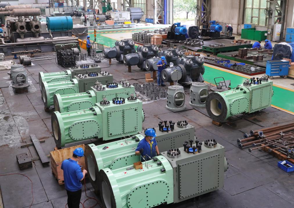 2022年6月13日,在沈鼓集團(tuán),工人在車間工作。新華社記者 楊青 攝