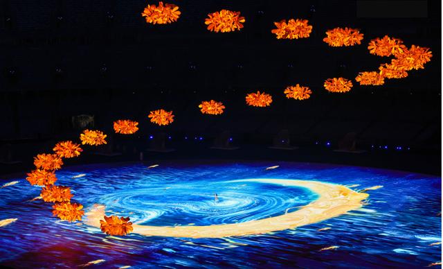 今晚的“大蓮花”,處處見桂花,時時聞得到桂花香。一朵“金桂之花”到22組金桂花團,從分散到匯聚,時而形成流水,時而形成拱橋,最終將在空中形成巨大的“金桂花冠”,向每一位運動員傳遞“逐夢折桂”的美好寓意。