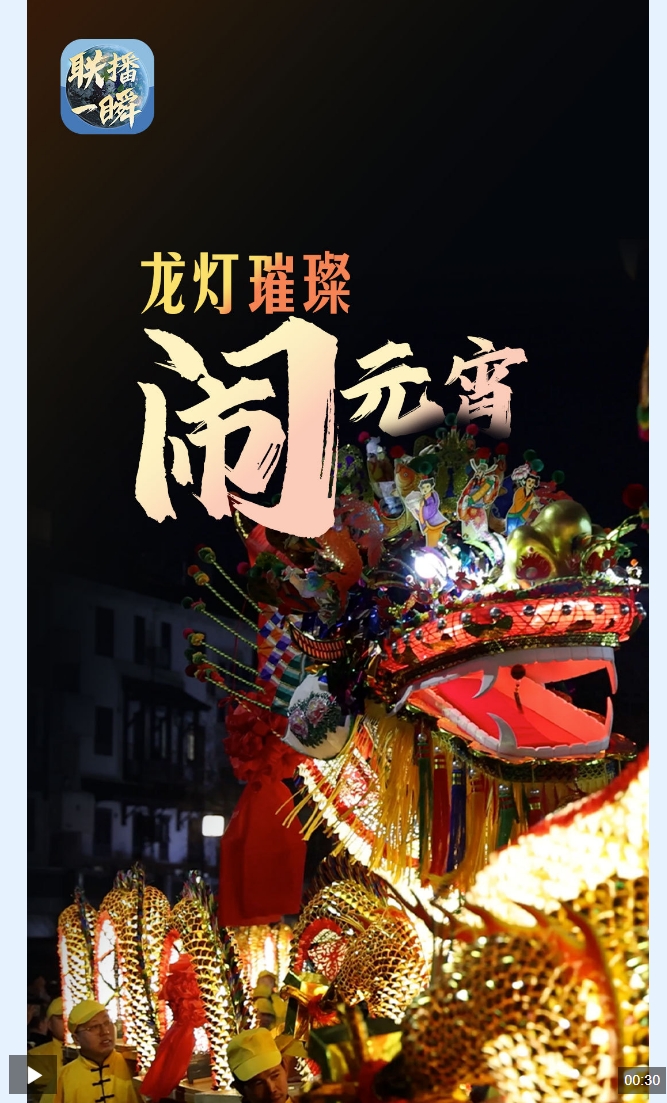 龍騰燈舞鬧元宵。一條舞動的板凳龍,集繪畫、雕塑、扎制編糊工藝于一身,融體育、雜技、舞蹈于一爐。板凳相連,群眾共舞,聯(lián)播一瞬帶你賞龍舞,度元宵。