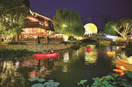 9月21日晚,嘉興市區(qū)南湖天地,一輪巨大的月亮裝置在夜色中散發(fā)著柔和而明亮的光芒,仿佛將中秋的浪漫氛圍提前拉滿。市民、游客們泛舟于湖面,任由“月光”與霓虹的光影在水面上交織閃爍,沉浸在這如夢如幻的場景中,感受著中秋佳節(jié)的臨近,心中滿是對團(tuán)圓與美好的期盼。(徐志達(dá))