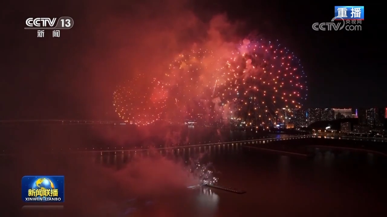 10月1日,香港在維多利亞港舉行國慶煙花匯演,超過3萬枚煙花照亮夜空。匯演中還特別融入了東江水、大熊貓和全運會等元素,吸引眾多市民和游客前來觀看。在澳門,伴隨《七子之歌》等歌曲,不同造型的煙花在夜空中綻放,表達對祖國的美好祝福。當(dāng)晚還舉行了“火樹銀花嘉年華”,為觀眾提供更多觀賞樂趣。