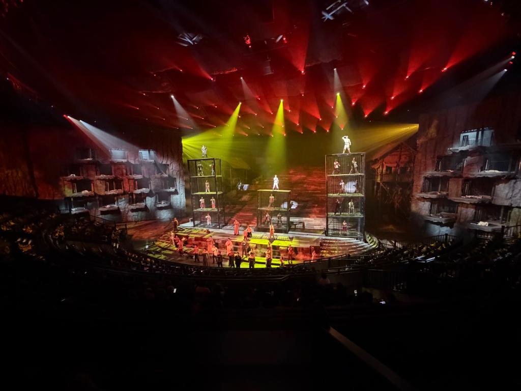 “《重慶·1949》打破代際隔閡,靠的是‘新意’。傳統(tǒng)紅色劇目受限于靜態(tài)舞臺,不易讓年輕人產(chǎn)生情感共鳴。這正是我們決心突破傳統(tǒng)模式的原因!敝貞c1949大劇院副總經(jīng)理周慧芳說,在科技助力下,該劇打造了獨特的“5環(huán)”旋轉(zhuǎn)舞臺,構(gòu)建出沉浸式劇場空間。隨著觀眾席與舞臺同步轉(zhuǎn)動,梯坎、碼頭、監(jiān)獄等場景無縫切換,重慶解放前夕的動人故事層層展開。