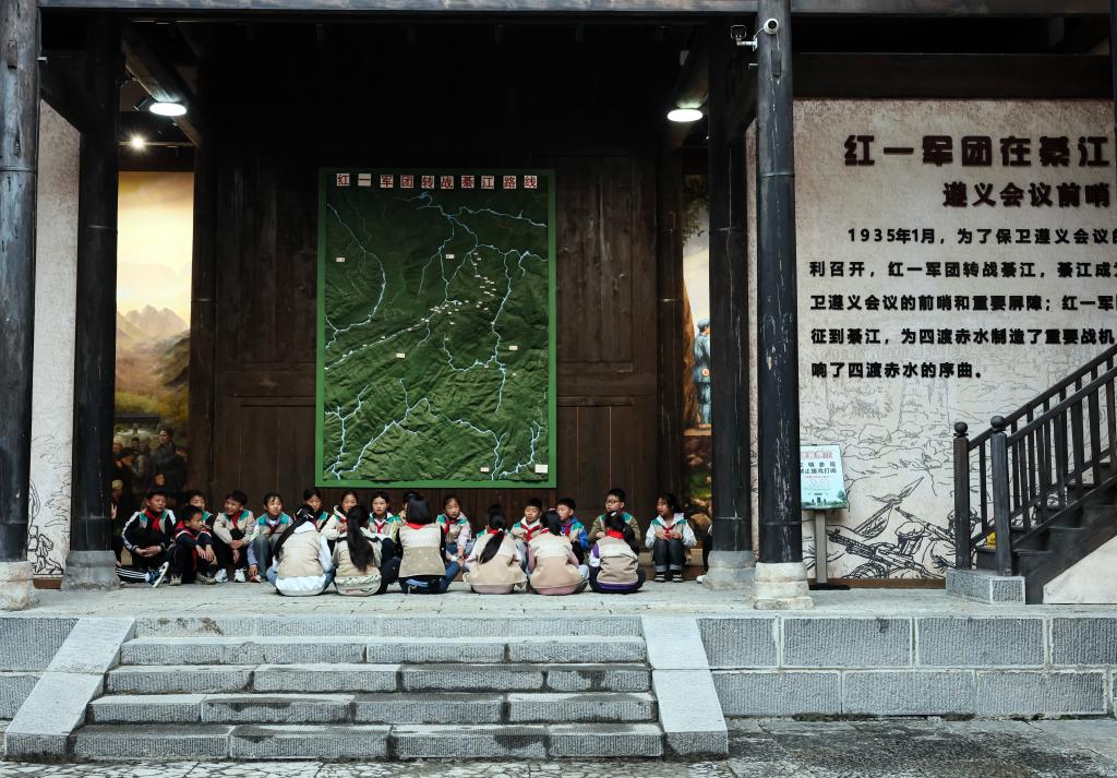 在重慶市綦江區(qū)石壕鎮(zhèn),學(xué)生們在紅一軍團司令部舊址參加研學(xué)活動。蘭紅光 攝