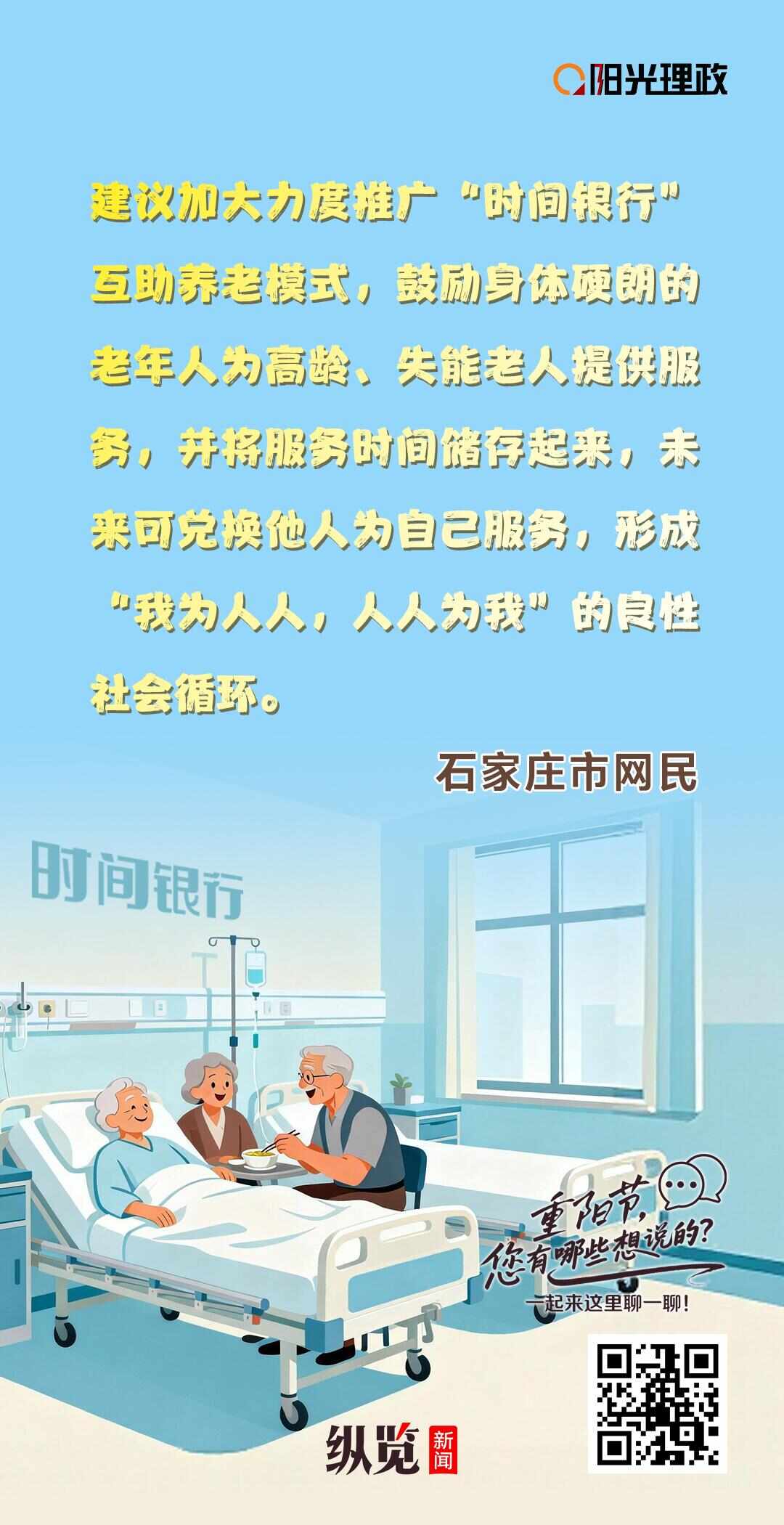 重陽節(jié)來臨,我們?cè)撊绾斡脤?shí)實(shí)在在的行動(dòng)向長輩表達(dá)愛?在縱覽新聞陽光理政平臺(tái)上,不少熱心網(wǎng)民已經(jīng)行動(dòng)起來,圍繞“如何更好地敬愛老人”這一話題,提出了許多寶貴的建議。讓我們一起看看這些充滿智慧與溫情的“金點(diǎn)子”。