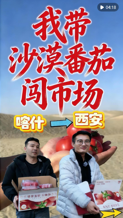 “喀柿紅”產(chǎn)地在新疆塔克拉瑪干沙漠邊緣的伽師縣。這是一種番茄新品種,是在沙漠大棚里培育,用當(dāng)?shù)氐蟮柠}堿水澆灌。用陳鎮(zhèn)的話說,這小小的番茄里面都是科技,但沒有“狠活兒”,是完全綠色放心的好產(chǎn)品。