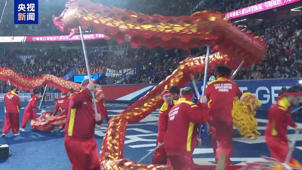 在當?shù)貢r間21日晚進行的一場法甲聯(lián)賽中,為慶祝中國春節(jié),巴黎圣日耳曼隊身披馬年特別版球衣登場。當晚,王子公園球場被濃濃的中國年味裝點一新。