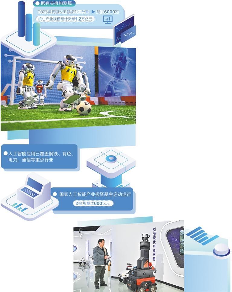 據(jù)有關(guān)機(jī)構(gòu)測算,2025年我國人工智能企業(yè)數(shù)量超過6000家,核心產(chǎn)業(yè)規(guī)模預(yù)計(jì)突破1.2萬億元。AI手機(jī)、AI電腦、AI眼鏡等人工智能終端產(chǎn)品加快走進(jìn)千家萬戶。人工智能應(yīng)用已覆蓋鋼鐵、有色、電力、通信等重點(diǎn)行業(yè),逐漸深入產(chǎn)品研發(fā)、質(zhì)量檢測、客戶服務(wù)等重點(diǎn)環(huán)節(jié)。國家人工智能產(chǎn)業(yè)投資基金啟動(dòng)運(yùn)行,資金規(guī)模達(dá)600億元。