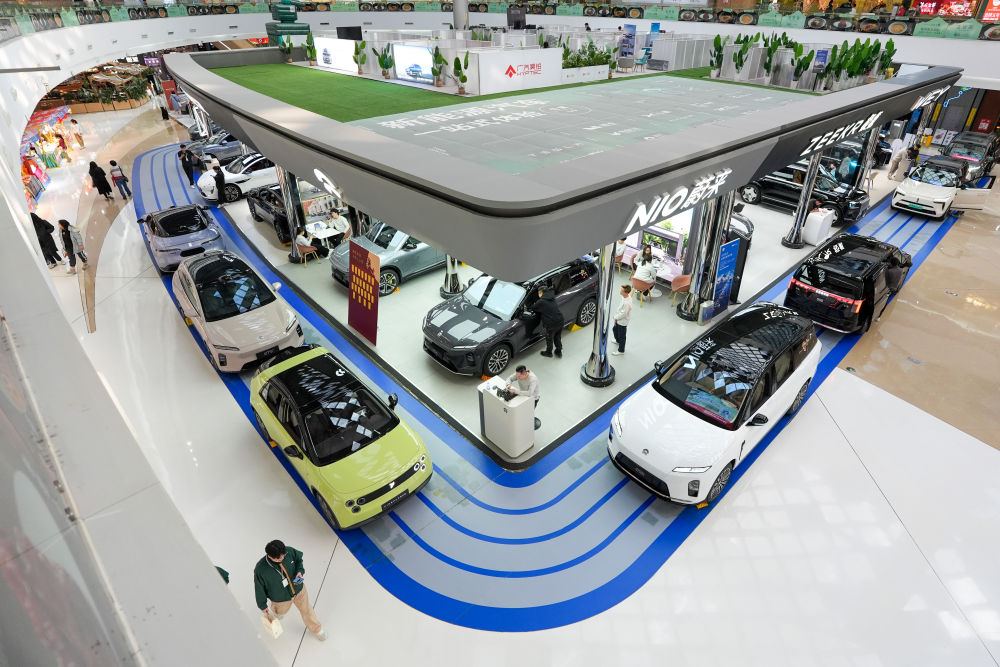 在北京市朝陽區(qū)一個(gè)商場內(nèi),市民在了解新能源汽車(2026年2月11日攝)。新華社記者 鞠煥宗 攝