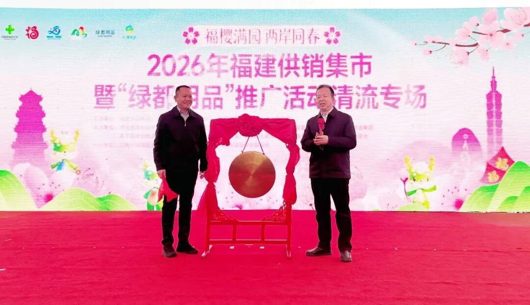【福建省供銷(xiāo)社副主任邱志向(右)與清流縣政協(xié)主席鄒衛(wèi)東(左)為活動(dòng)鳴鑼開(kāi)市】