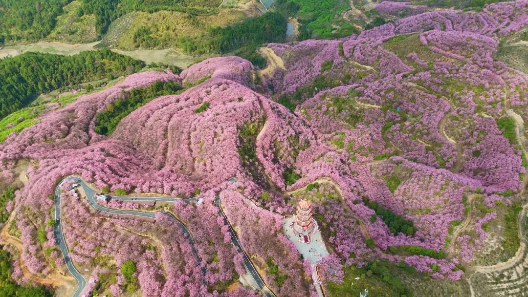 馬年新春,賴坊鎮(zhèn)的山間花海如潮。兩千畝櫻花園迎來(lái)盛花期,三十萬(wàn)株櫻花次第綻放。