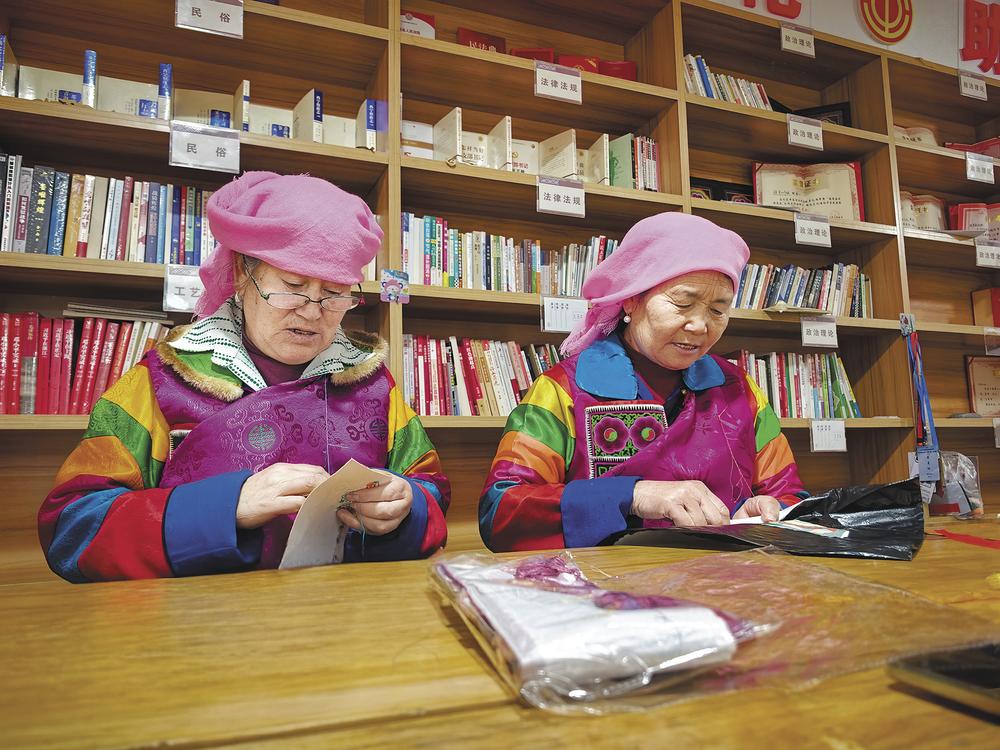 “搬到新村后,村里建了盤繡園,邀請我們這些會盤繡的婦女來做工,還請老師指導(dǎo)繡法、幫我們找銷路,讓我們靠著老手藝就能在家門口掙錢。如今每天來盤繡園,和老姐妹們聊聊天、做針線活,既不耽誤照顧家里,又能增收,日子過得格外舒心!崩畹┮娝髡f。她告訴記者,去年一年就靠盤繡掙了一萬多塊錢,不僅改善了家里生活,也多了份底氣,“以前花錢精打細(xì)算,現(xiàn)在靠自己手藝掙錢,想買點(diǎn)啥就買啥,心里特別踏實(shí)!