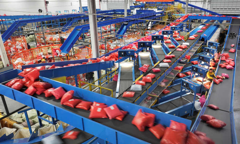 在江蘇南通一家國際物流園分揀中心,工作人員在分揀貨物(2023年12月20日攝,無人機(jī)照片)。“十四五”期間,面對地緣政治風(fēng)險(xiǎn)和貿(mào)易壁壘,我國以跨境電商、保稅維修、市場采購等為代表的新業(yè)態(tài)新模式助力各國消費(fèi)者、生產(chǎn)者“買全球、賣全球”,成為穩(wěn)外貿(mào)的重要引擎。