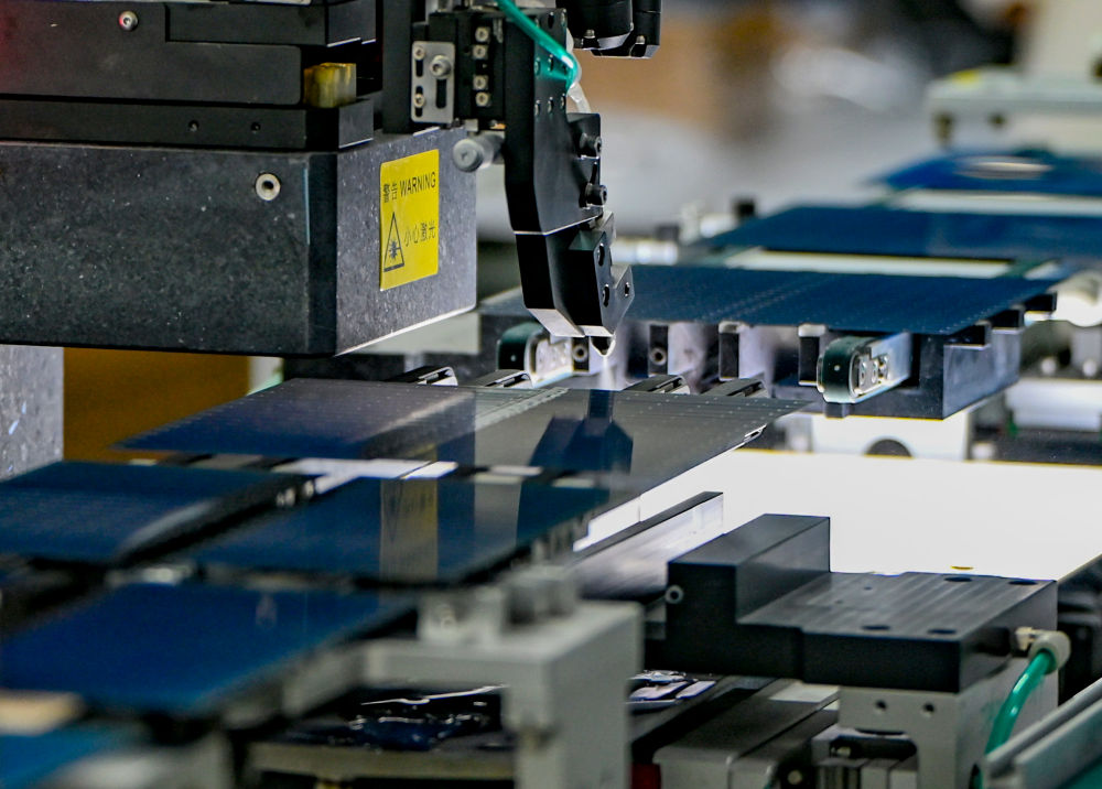 在新疆巴音郭楞蒙古自治州若羌縣一家新能源有限公司,全自動(dòng)劃片機(jī)在切割光伏電池片(2025年9月22日攝)!笆奈濉逼陂g,電動(dòng)汽車、光伏產(chǎn)品、鋰電池等“新三樣”產(chǎn)品2025年出口規(guī)模接近1.3萬億元,比2020年增長3.5倍。