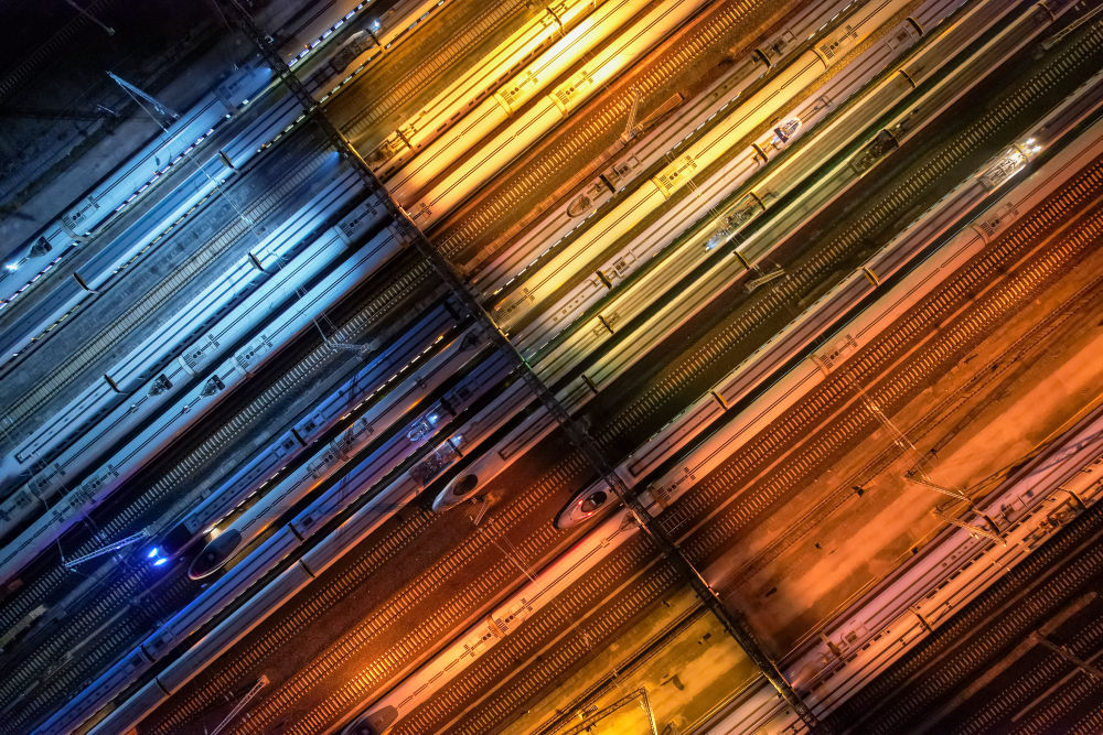 動(dòng)車組列車停靠在貴陽北動(dòng)車所內(nèi)(2023年1月6日攝,無人機(jī)照片)!笆奈濉逼陂g,我國建成世界規(guī)模最大、先進(jìn)發(fā)達(dá)的高速鐵路網(wǎng)。