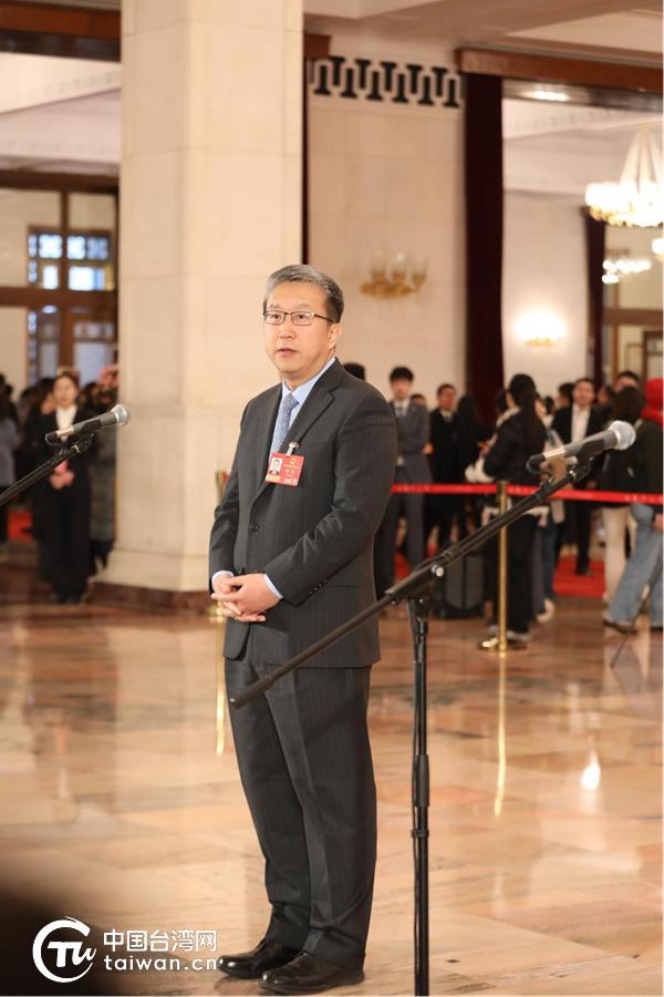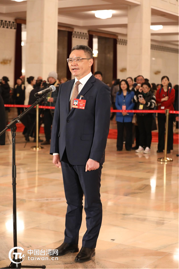 3月5日,十四屆全國(guó)人大四次會(huì)議首場(chǎng)“代表通道”集中采訪(fǎng)活動(dòng)在人民大會(huì)堂舉行。這是全國(guó)人大代表王文毅接受媒體采訪(fǎng)。(中國(guó)臺(tái)灣網(wǎng)記者 李寧 攝)