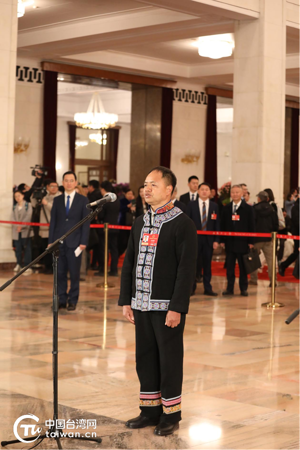 3月5日,十四屆全國(guó)人大四次會(huì)議首場(chǎng)“代表通道”集中采訪(fǎng)活動(dòng)在人民大會(huì)堂舉行。這是全國(guó)人大代表農(nóng)加貴接受媒體采訪(fǎng)。(中國(guó)臺(tái)灣網(wǎng)記者 李寧 攝)