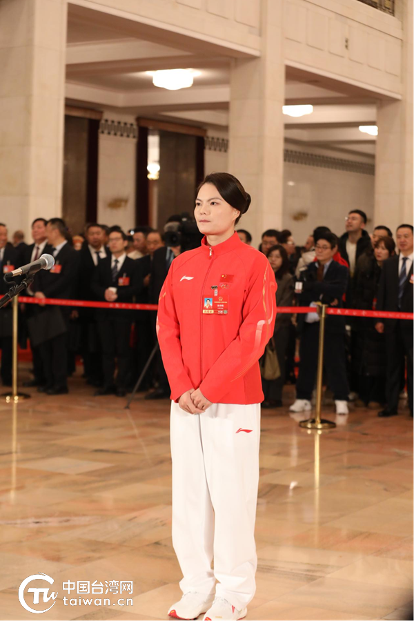 3月5日,十四屆全國(guó)人大四次會(huì)議首場(chǎng)“代表通道”集中采訪(fǎng)活動(dòng)在人民大會(huì)堂舉行。這是全國(guó)人大代表?xiàng)钣佬藿邮苊襟w采訪(fǎng)。(中國(guó)臺(tái)灣網(wǎng)記者 李寧 攝)