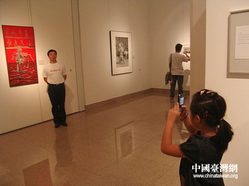 111位臺(tái)灣藝術(shù)家參的121組件精美的作品,包括繪畫、雕塑、裝置、攝影、錄象藝術(shù)、行為藝術(shù)文件紀(jì)錄等多種形式,是戰(zhàn)后50年來臺(tái)灣藝術(shù)家對(duì)政治、社會(huì)所作的響應(yīng),具體地刻畫出了臺(tái)灣藝術(shù)發(fā)展的軌跡,完整地向北京市民呈現(xiàn)了臺(tái)灣50年來的美術(shù)發(fā)展脈絡(luò)。(圖文 于曉亮)
