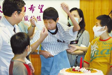 臺(tái)大醫(yī)院為陳小弟(中)慶祝重生(臺(tái)灣《中國時(shí)報(bào)》圖片)