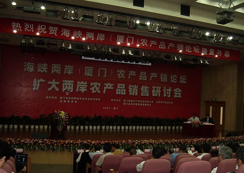 中國臺灣網(wǎng)8月30日廈門消息 海峽兩岸農(nóng)產(chǎn)品產(chǎn)銷論壇8月29日在廈門召開,本次論壇主要是探討兩岸農(nóng)業(yè)合作發(fā)展以及臺灣農(nóng)產(chǎn)品在大陸銷售問題,以進(jìn)一步促進(jìn)兩岸農(nóng)業(yè)貿(mào)易,擴(kuò)大臺灣農(nóng)產(chǎn)品外銷通路。在開幕式后,分別于上午和下午舉行了兩岸農(nóng)產(chǎn)品產(chǎn)銷主題演講和擴(kuò)大兩岸農(nóng)產(chǎn)品銷售研討會,兩岸農(nóng)業(yè)界人士的發(fā)言說明了兩岸農(nóng)業(yè)合作前景廣闊。